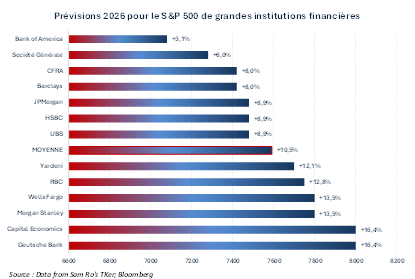 Au fond, ce graphique raconte moins une conviction unanime qu’un équilibre fragile : celui d’un marché encore soutenu par des fondamentaux solides, mais désormais dépendant de la capacité des entreprises à transformer l’innovation en croissance tangible. Un consensus à +10,5% n’est ni un signal d’euphorie, ni un appel à la défiance. Il invite surtout à une gestion disciplinée, où la sélection des moteurs de croissance prime sur le simple pari directionnel, dans un cycle qui entre progressivement dans une phase de maturité.